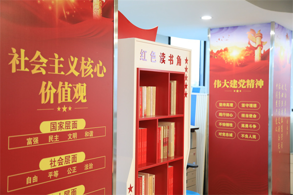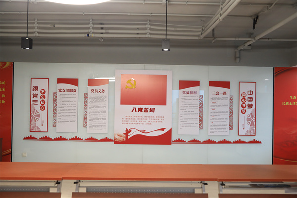 本着“统筹规划、综合利用、功能完善、节约成本、一室多用”的原则,在原27层培训室的基础上进行了改造提升,科学规划布置了党旗、入党誓词、党员义务、党员权利、“党组织架构图”等基础内容。还配备了党建书柜,设置了支部展示窗口,增设了精神文明创建展板,确保了党员学习教育有阵地、交流互动有平台、形象展示有载体,有力提升了集团总部党建工作标准化、规范化水平。