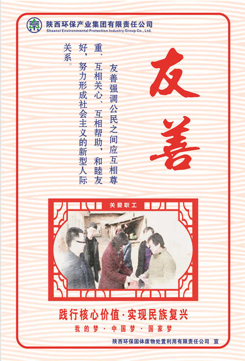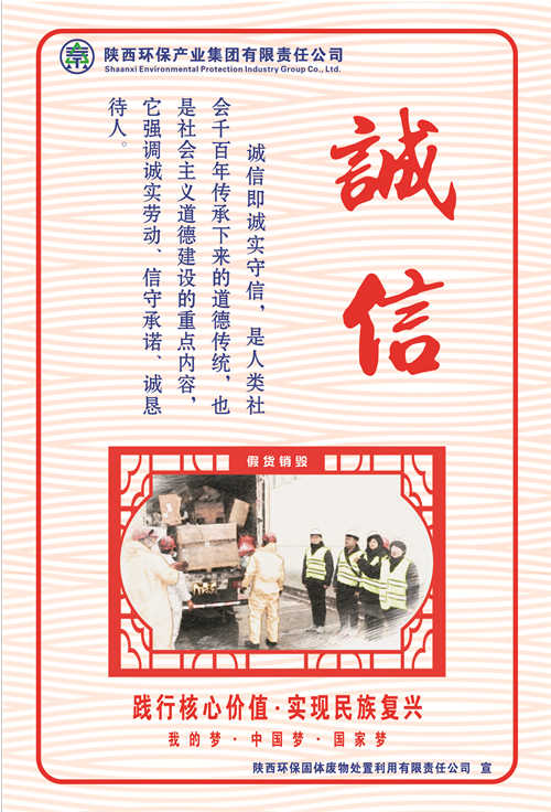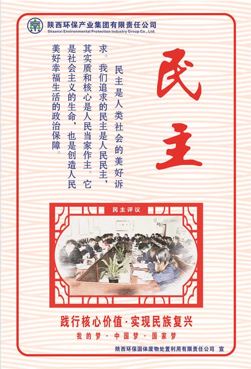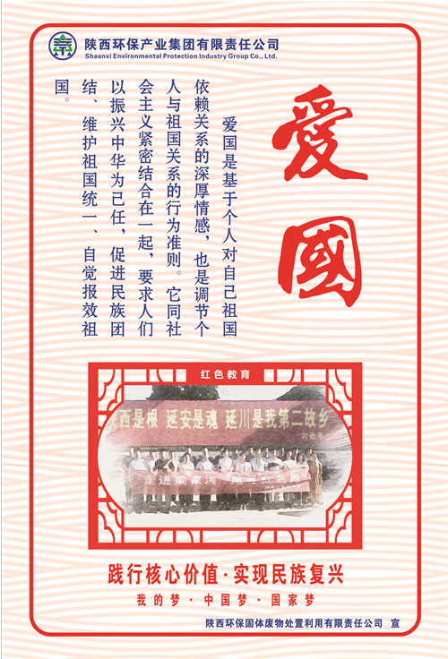 陕西环保集团高度重视社会主义核心价值观的社会宣传工作,着力在明理明道上深化,在入脑入心上深化,在求准求新上深化,在落细落小落实上深化,努力将社会主义核心价值观转化为广大职工的情感认同和行为习惯。近期,省国资委在系统企业开展社会主义核心价值观宣传海报创作及展评活动,陕西环保集团广大干部职工积极响应号召,创作出了一批围绕社会主义核心价值观24字内涵的优秀原创海报作品。这一文化载体,充分体现了陕西环保集团作为省属国有企业在习近平新时代中国特色社会主义思想指引下,厚植厚培中华文明,在落实“五新”战略、实现追赶超越中,不断提高广大干部职工文明素养和道德水平的新风貌新形象新作为。(南楠)