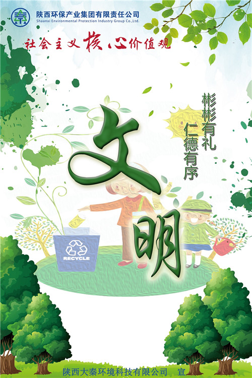 陕西环保集团高度重视社会主义核心价值观的社会宣传工作,着力在明理明道上深化,在入脑入心上深化,在求准求新上深化,在落细落小落实上深化,努力将社会主义核心价值观转化为广大职工的情感认同和行为习惯。近期,省国资委在系统企业开展社会主义核心价值观宣传海报创作及展评活动,陕西环保集团广大干部职工积极响应号召,创作出了一批围绕社会主义核心价值观24字内涵的优秀原创海报作品。这一文化载体,充分体现了陕西环保集团作为省属国有企业在习近平新时代中国特色社会主义思想指引下,厚植厚培中华文明,在落实“五新”战略、实现追赶超越中,不断提高广大干部职工文明素养和道德水平的新风貌新形象新作为。(南楠)