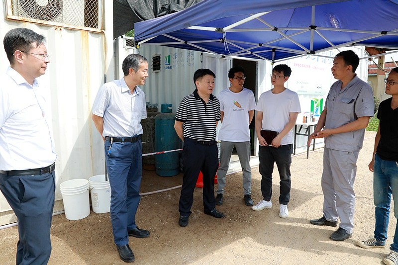 在项目现场,两个集装箱大小的设备是此次中试项目的“主力军”,“正渗透(FO)系统+低温蒸发结晶(LTEC)系统”技术又是主力里的“王牌”,目前每天有约20吨江村沟垃圾渗滤液厂MBR产水被有效处理,截至6月12日已处理高浓度MBR产水149吨,结晶固体盐约150千克。熊良虎仔细察看渗滤液处理工艺、中试设备运转等情况,不时询问系统运行处理过程细节,叮嘱现场工作人员注意安全,严谨有序开展好中试工作。