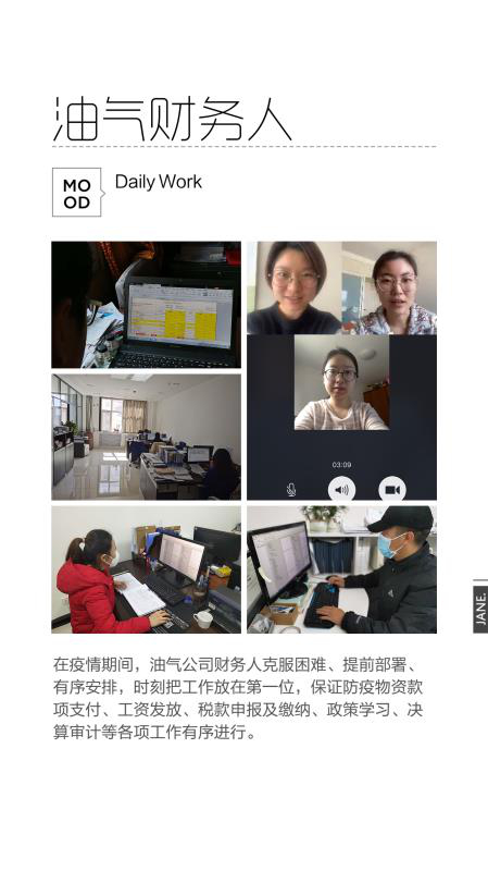 油气公司财务部时刻把工作放在第一位,圆满完成了防疫物资款项支付、工资发放、税款申报、缴纳和税收优惠政策的学习与落实、决算审计事项的推进、各类报表的准时报送等工作。2月23日晚10时29分接到集团公司关于2月快报无法延期的通知,考虑到时间紧迫,即刻与三级子公司召开电话会议,各单位财务负责人均积极表示排除万难,保证按时高效完成工作。会议结束已是晚上十一点半,会议中不时传来了孩子们稚嫩的声音,“宝宝先睡,妈妈要先把工作做完……。”在这个特殊的时期,有人家中无电脑,需要第二天去借;有人要把时间碎片化,高质量工作;有人在单位获批部分复工名额时,第一个报名……