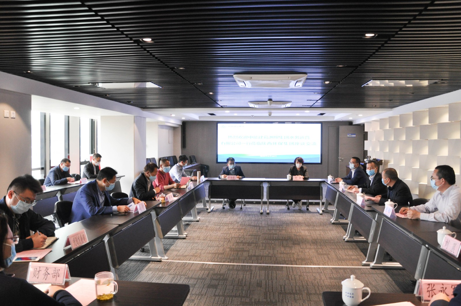 4月16日,中能建葛洲坝集团水务运营公司总经理沈远持一行来陕西环保集团交流座谈。集团公司党委副书记、董事、总经理顾峰出席并主持会议,党委副书记、工会主席黄国全出席会议,副总经理惠哲在会上对集团情况进行了介绍。与会双方就水处理及市政污泥处置等方面达成了初步合作意向。