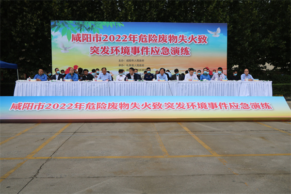 9月21日,咸阳市2022年危险废物失火致突发环境事件应急演练在三秦环保股份公司下属新天地公司举行。咸阳市委常委、副市长杨武民,市政府副秘书长董忠文,陕西环保集团副总经理李钊出席。