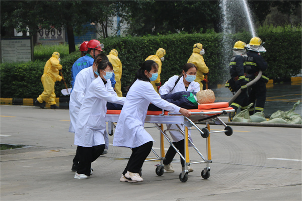 本次演练模拟工人不小心将碱性废液倒入有机废酸吨桶致使酸碱混合,吨桶内发生化学反应,短时间内大量放热,达到有机废酸燃点起火致突发环境事件企业、政府先后启动应急响应全过程。