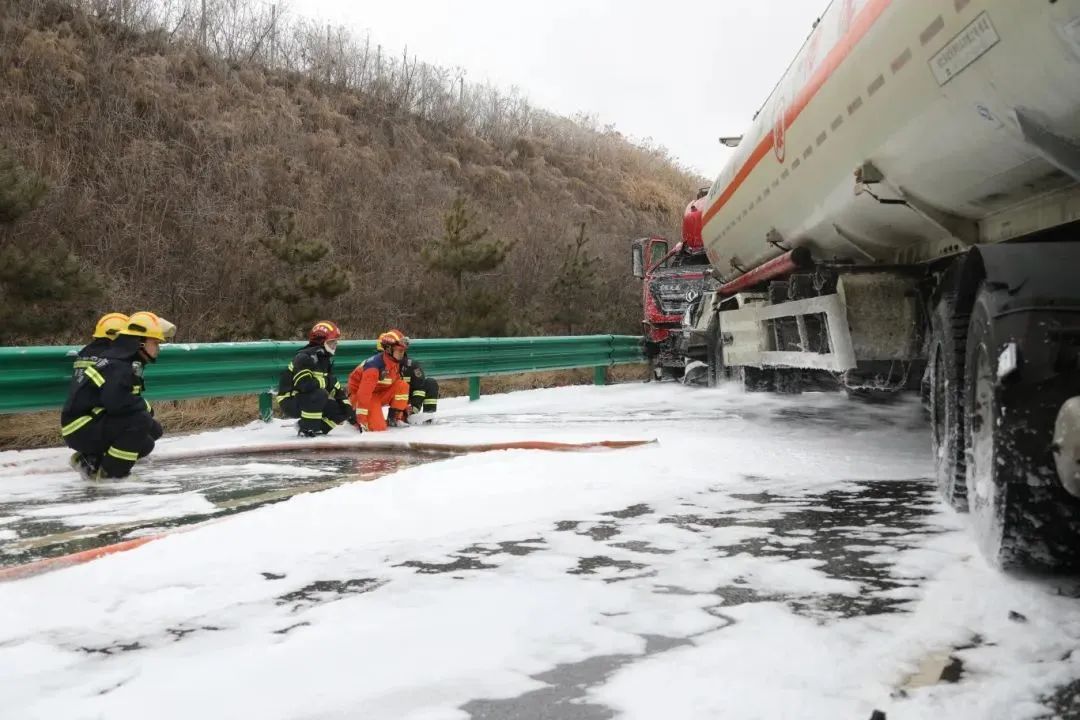 风雪交加,国道沟深路滑,应急救援车行驶了近7个小时后到达现场开展泄露污染物清理工作。由于现场无法使用机械设备,新天地公司应急救援队人员只能穿好防护服进行人工清理。零下8℃的雪天,队员们干的大汗淋漓,人群中冒出一股股热气。经过近6个小时的紧张作战,直至深夜,现场共清理污染油泥9.38吨,均运回省危废处置中心安全处置。