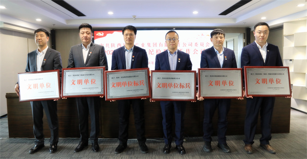 会议对荣获2023年度党建工作年度目标责任考核“优秀单位”的中圣公司、水环境公司、园区开发公司、油气公司、三秦环保股份公司、鼎丰矿业公司和荣获陕西环保集团“文明单位(标兵)”的:三秦环保股份公司、榆林分公司、园区开发公司、新能源公司、德启公司、朗新公司,荣获2023年度“学习强国”平台“学习标兵”称号的延安分公司、水环境公司、油气公司、榆林分公司、鼎丰矿业公司、生物科技公司,荣获2023年度融媒体平台“宣传标兵”称号的:中圣公司、油气公司、水环境公司、绿色能源公司、监测公司、鼎丰矿业公司进行了表彰。