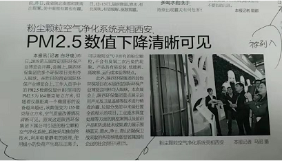 《粉尘颗粒空气净化系统亮相西安PM2.5数值下降清晰可见》