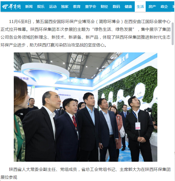 五、华商网报道陕西环保集团党委书记、董事长熊良虎陪同省人大常委会副主任、省总工会主席郭大为一行参观陕西环保集团“深入推进四大保卫战,勇做陕西污染防治排头兵”主题展区。