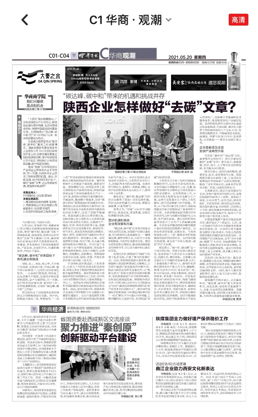 为实现“碳中和”“碳达峰”目标,需要哪些支持配合?陕西企业如何做好“去碳”文章?嘉宾表示,需要政策、经济、技术、人才等方面支持和保障,多方配合共同推进。