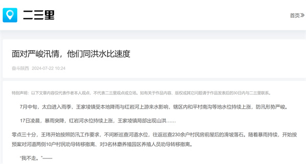 7月中旬,进入雨季,陕西宝鸡市太白县王家堎镇受本地降雨与红岩河上游来水影响,辖区内和平村南沟等地水位持续上涨,防汛形势严峻。